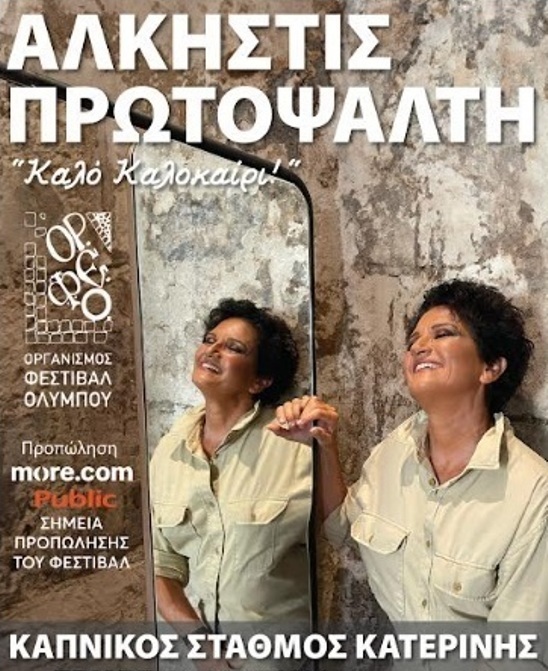 Η Άλκηστις πρωτίστων αφού μας εύχεται «Καλό καλοκαίρι», μας διαβεβαιώνεται ότι θα μας χαρίσει μια μοναδική βραδιά, με αφορμή τη συναυλία της που θα πραγματοποιηθεί την Τρίτη 23 Ιουλίου 2024 στις 9:30 το βράδι στο πλαίσιο του 53 ου Φεστιβάλ Ολύμπου στο αίθριο του Καπνικού Σταθμού Κατερίνης, έδρα της Εθελοντικής Ομάδας Δράσης «Ο