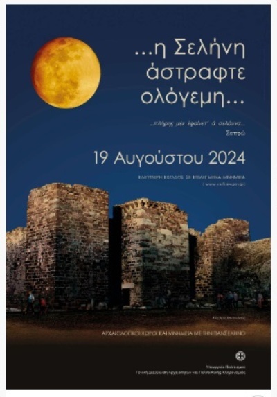 "Σας προσκαλούμε λοιπόν και φέτος να απολαύσετε το φως του φεγγαριού σε αρχαιολογικούς χώρους, μουσεία και μνημεία, την νύχτα της Αυγουστιάτικης Πανσελήνου, τη νύχτα που η Σελήνη θα αστράφτει ολόγεμη!", σημειώνει το Υπουργείο Πολιτισμού.