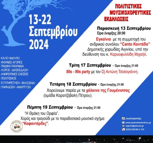 Η Εμποροπανήγυρη Αιγινίου ανοίγει τις πύλες της, με τα επίσημα εγκαίνιά της στις 13 Σεπτεμβρίου και διαρκεί ένα δεκαήμερο, έως 22 Σεπτεμβρίου 2024.
