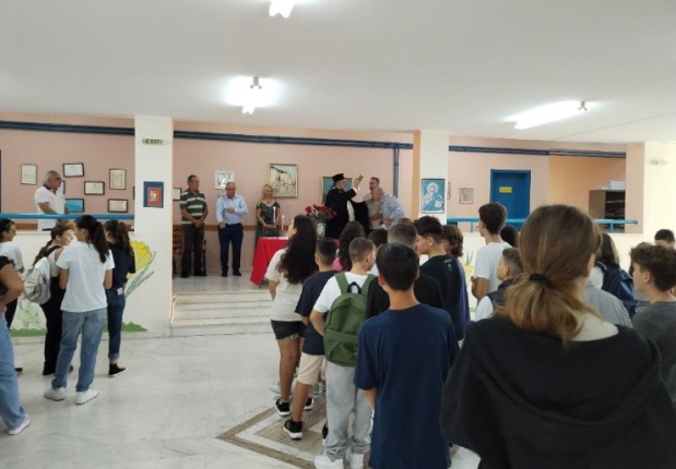 Ο Αγιασμός που πραγματοποιήθηκε παρουσία του εκπαιδευτικού προσωπικού, των μαθητών και των γονέων τους, τελέστηκε από τον Αρχιμανδρίτη Γ. Μιάουρα.