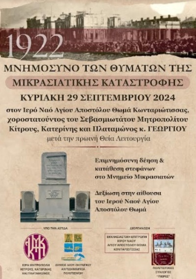 • Επιμνημόσυνη δέηση & κατάθεση στεφάνων στο Μνημείο Μικρασιατών