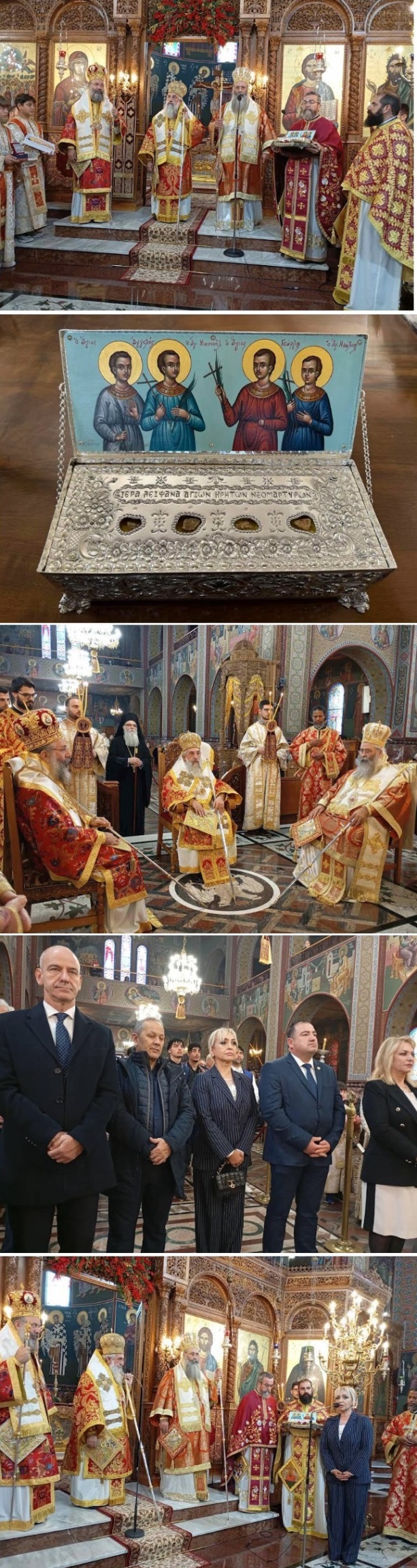 Πριν την απόλυση της Θ. λειτουργίας, ο Αρχιεπίσκοπος Κρήτης παρέδωσε αποτμήματα των ι. Λειψάνων των Αγίων Τεσσάρων Νεομαρτύρων Μανούηλ, Αγγελή, Γεωργίου και Νικολάου, που μαρτύρησαν στο Ρέθυμνο, με την επισήμανση ότι εφέτος συμπληρώνονται διακόσια χρόνια από το μαρτύριό τους (1824-2024)