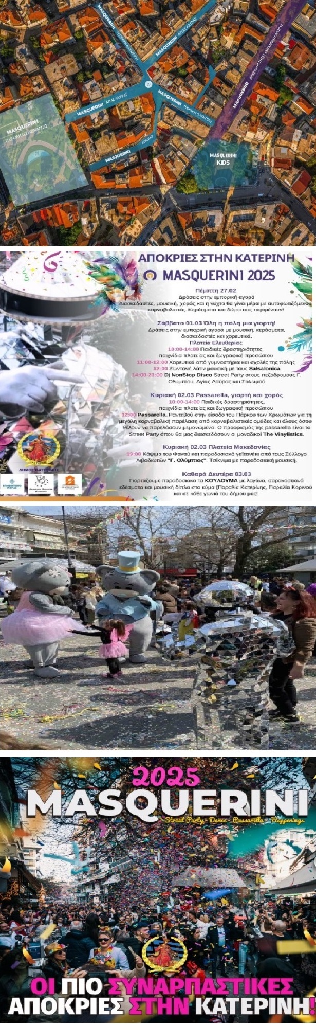 Το φετινό Masquerini, αφιερωμένο στην ντίσκο εποχή των 80 - 90 θα περιλαμβάνει εκδηλώσεις στον κεντρικό πεζόδρομο, την Πλατεία Ελευθερίας, την Πλατεία Μακεδονίας, street party στους παράλληλους πεζοδρόμους ενώ το ξεφάντωμα αναμένεται να κορυφωθεί την Κυριακή 2 Μαρτίου, το μεσημέρι, με την αποκριάτικη παρέλαση.