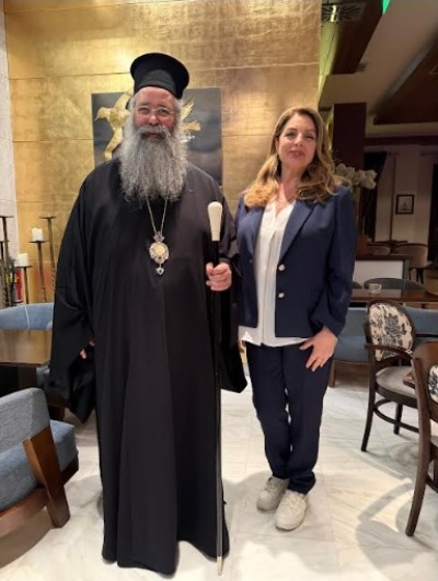 Ο Σεβασμιώτατος Ποιμενάρχης κ. Γεώργιος ευχαρίστησε την Πρόεδρο του Ε.Ο.Τ. κα Γκερέκου για τη σημαντική και συνεχή στήριξη που επιδεικνύει στην ανάδειξη των προσκυνηματικών περιηγήσεων της Πιερίας.