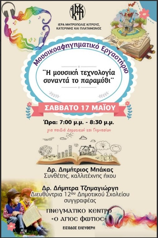 AIGINIONEWS: ''Ο ΑΓΙΟΣ ΦΩΤΙΟΣ'' της Ιεράς Μητροπόλεως Κίτρους :Μουσικο-αφηγηματικό Εργαστήριο για παιδιά- 17/5/2025