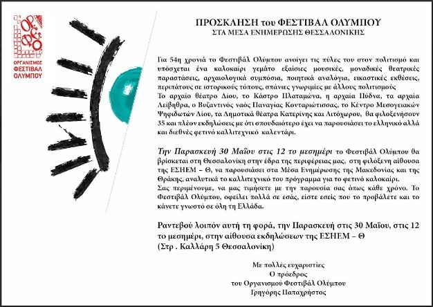 Η εκδήλωση αποτελεί προϊόν της συνεργασίας του Οργανισμού Φεστιβάλ Ολύμπου με τη διοίκηση της δημοσιογραφικής ένωσης των