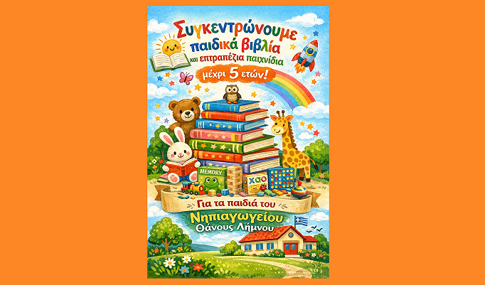 Συγκεντρώνουμε παιδικά βιβλία, παραμύθια και επιτραπέζια παιχνίδια για παιδιά έως 5 ετών, τα οποία θα δοθούν δωρεά στο Νηπιαγωγείο Θάνους Λήμνου