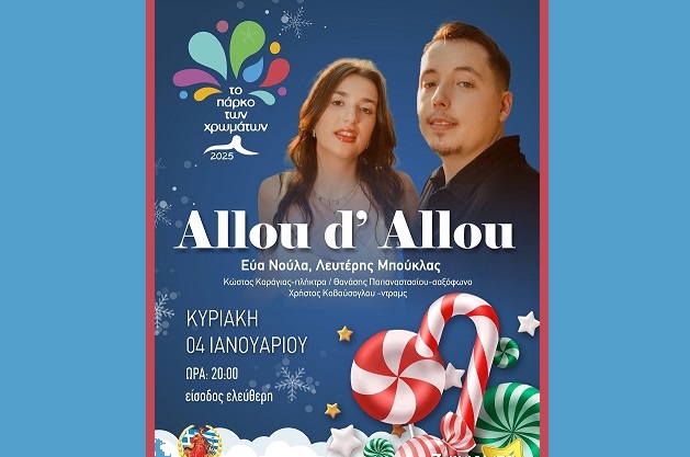 Την Κυριακή 4 Ιανουαρίου 2026 και ώρα 20:00μμ , Allou d’ Allou , στο «Πάρκο των Χρωμάτων».