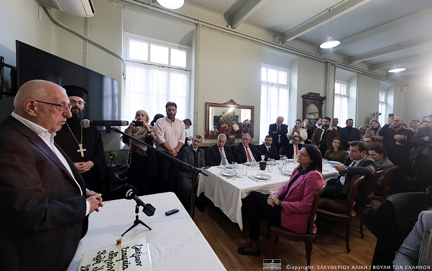Ο Πρόεδρος της Βουλής ευχαρίστησε τη Διοίκηση για την πρόσκληση, τονίζοντας ότι η παρουσία του στο Γηροκομείο Αθηνών αποτελεί για τον ίδιο μια ιδιαίτερα συγκινητική στιγμή. Αναφέρθηκε στη συλλογική προσπάθεια που καταβλήθηκε τα προηγούμενα χρόνια με αποτέλεσμα «αυτό το μικρό θαύμα της οικονομικής εξυγίανσης του Ιδρύματος».