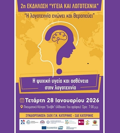 Μαζί με το ΣΔΕ Κατερίνης, συνδιοργανώνουμε την εκδήλωση αποδεικνύοντας ότι «η λογοτεχνία ενώνει» και όσον αφορά το θέμα μας, θεραπεύει».