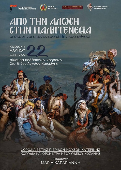 Οι σκοτεινοί αιώνες του Ελληνικού Έθνους που θα πραγματοποιηθεί την Κυριακή 22 Μαρτίου στις 19:00, στην αίθουσα πολλαπλών χρήσεων του 2ου & 5ου Λυκείου Κατερίνης