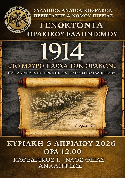 Τις άγιες ημέρες του Πάσχα του 1914, οι Έλληνες της Ανατολικής Θράκης βίωσαν τον διωγμό, τον ξεριζωμό και την απώλεια των πατρογονικών τους εστιών. Εκεί όπου θα έπρεπε να κυριαρχεί το φως της Ανάστασης, επικράτησε το σκοτάδι του φόβου και της βίας.