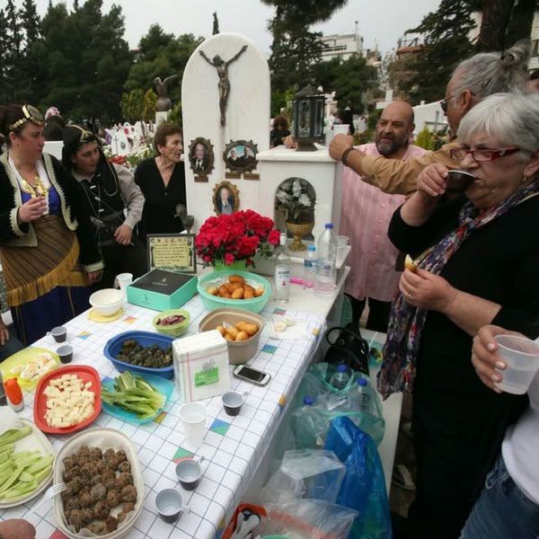 Τα μνήματα πλένονταν και φαγητά ετοιμάζονταν, τα κεράσματα έδιναν και έπαιρναν.