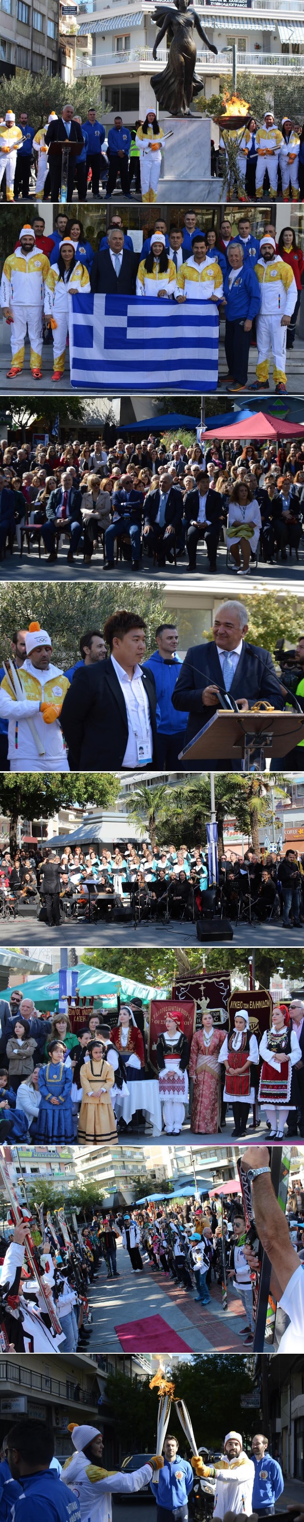Στο χαιρετισμό του, ο εκπρόσωπος της επιτροπής των Χειμερινών Ολυμπιακών Αγώνων της «PYEONGCHANG 2018» (Δημοκρατία της Κορέας), Γιούν Τζου Χονγκ σημείωσε: «Εκφράζω τις ευχαριστίες, την ευγνωμοσύνη μου σε όλους τους συντελεστές για αυτή την θερμή υποδοχή, για την ευγένεια των αρχών και κατοίκων της πόλης, για αυτή την όμορφη σήμερα εκδήλωση, εδώ στην Κατερίνη. Ο λαός της Δημοκρατίας της Κορέας αισθάνεται υπερηφάνεια και τιμή για τη διεξαγωγή των αγώνων στη χώρα μας. Σας διαβεβαιώνω ότι θα κάνουμε ότι είναι δυνατόν, για την επιτυχία της διοργάνωσης. Και πιστεύω ότι θα μεταδώσουμε στον κορεατικό λαό και σε όλο τον πλανήτη το μήνυμα για την Ειρήνη και τη Δημοκρατία ».