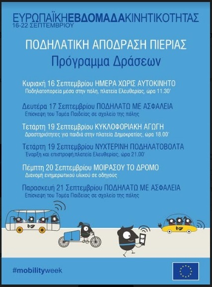Η φετινή καμπάνια επικεντρώνεται στην «πολυτροπικότητα» – την ανάμειξη πολλών τρόπων μετακίνησης στο ίδιο ή σε διαφορετικά ταξίδια. Το αυτοκίνητο μπορεί να είναι ο καλύτερος τρόπος για να πάρετε την οικογένειά σας στη θάλασσα, για παράδειγμα, αλλά είναι άραγε ο καλύτερος τρόπος για να φτάσετε στο κέντρο της πόλης, όπου συχνά υπάρχουν περιορισμοί στον ελεύθερο χώρο και την πρόσβαση;Γιατί φέτος να μη δοκιμάσετε διαφορετικούς τρόπους μετακίνησης; Γιατί να μην ποδηλατήσετε ως το γυμναστήριο για να ξεκινήσετε να καίτε θερμίδες από πριν, γιατί να μηνανεβάσετε το ποδήλατό σας στο λεωφορείο και μετά να βολτάρετε μέχρι τα μαγαζιάμε τα πόδια ώστε να μην πληρώσετε για στάθμευση αυτοκινήτου; Διαλέγοντας τον κατάλληλο τρόπο μετακίνησης μπορείτε να πετύχετε σημαντική εξοικονόμηση χρόνου και χρημάτων, καθώς και να μειώσετε τον ημερήσιο ρύπο που αποβάλλεται στο περιβάλλον, ιδιαίτερα εάν ολοκληρώνετε σύντομες διαδρομές περπατώντας ή κάνοντας ποδήλατο.
