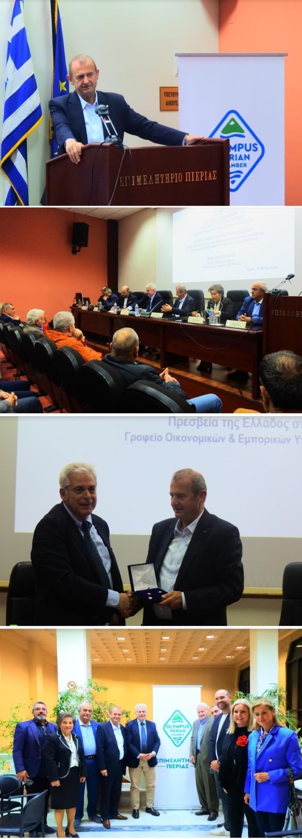 Τέλος, επισήμανε τη μεγάλη σημασία προώθησης εθνικού στρατηγικού σχεδίου με σημειολογική αναφορά στο Made in Greece υπερθεματίζοντας τη σημαντική κατοχύρωση του “Olympus Pierian Chamber” από το Επιμελητήριο Πιερίας και τη χρήση του από τις επιχειρήσεις μέλη του. «Το