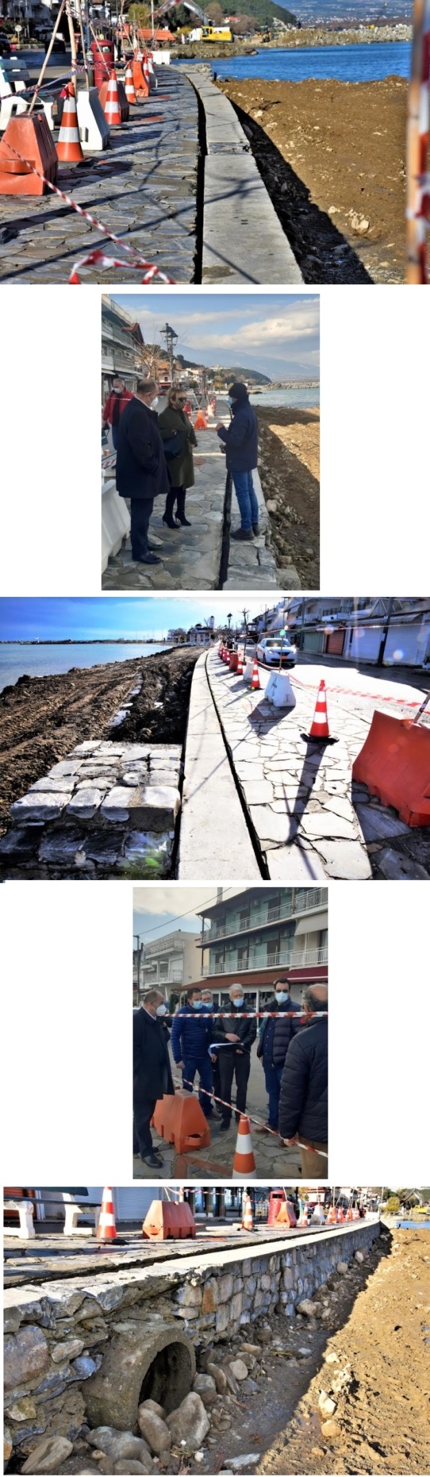 Με εντολή του Περιφερειάρχη Κεντρικής Μακεδονίας, Απόστολου Τζιτζικώστα, η Αντιπεριφερειάρχης Πιερίας, Σοφία Μαυρίδου, με κλιμάκιο της Περιφέρειας Κεντρικής Μακεδονίας / Περιφερειακής Ενότητας Πιερίας, αποτελούμενο από τον Διευθυντή της Αυτοτελούς Διεύθυνσης Πολιτικής Προστασίας στην ΠΚΜ, Dr. Χαράλαμπο Στεργιάδη και τον Υποδιευθυντή Τεχνικών Έργων ΠΕ Πιερίας, Παναγιώτη Μαυρίδη, μετέβη στον Πλαταμώνα όπου μαζί με τον Δήμαρχο Δίου – Ολύμπου, Ευάγγελο Γερολιόλιο και υπηρεσιακό κλιμάκιο του Δήμου, πραγματοποιήσανε αυτοψία κατά μήκος (80 περίπου μέτρων) επί της ακτής, στο πεζοδρόμιο του Δ.Δ. Πλαταμώνα όπου παρουσιάζεται έντονο πρόβλημα υποχώρησης του κρηπιδώματος και του πεζοδρομίου με ένδειξη περαιτέρω υποχώρησης με κίνδυνο κατάρρευσης, λόγω της υποσκαφή της θεμελίωσης από την επικράτηση των μεγάλων θαλάσσιων κυματισμών που αναπτύσσονται τοπικά, από τους ανέμους.