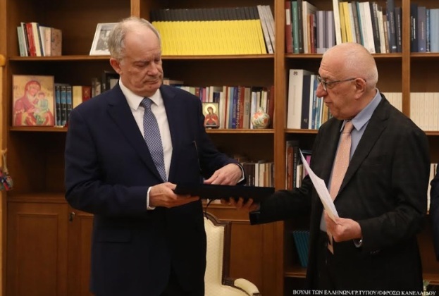 Ο Πρόεδρος της Βουλής παρέδωσε στον κ. Κ. Τασούλα το Πρωτόκολλο της Ψηφοφορίας μαζί με την Επιστολή του Πρωθυπουργού με την πρόταση υποψηφιότητάς του.