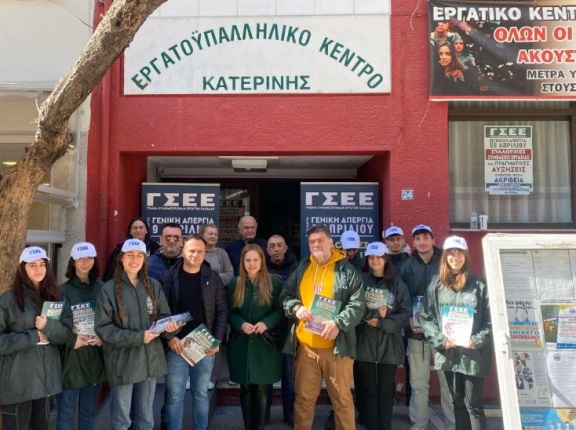 Ο Αναπληρωτής Πρόεδρος Δημήτρης Ταχματζίδης και το μέλος της Διοίκησης Γιώργος Αλεξανδράκης μαζί με μέλη της Διοίκησης του Εργατικού Κέντρου Κατερίνης, των σωματείων του και των δομών του, μοίρασαν ενημερωτικό υλικό σε κεντρικούς δρόμους της πόλης και συνομίλησαν με εργαζόμενους, τόσο για τα προβλήματα όσο και για τις διεκδικήσεις τους.