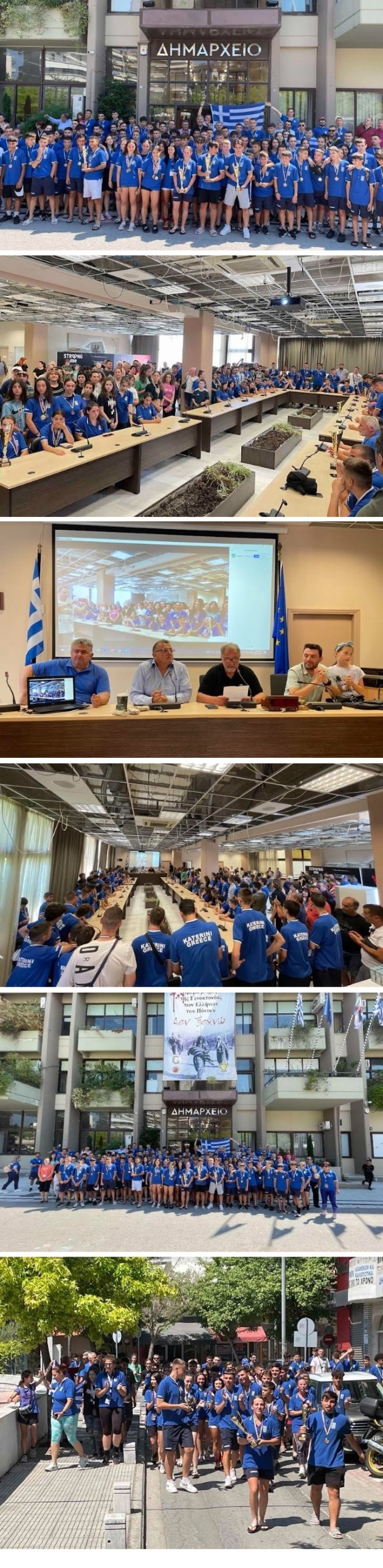Στην είσοδο του Δημαρχείου, τους επιφυλάχθηκε θερμή υποδοχή από τον αναπληρωτή Δημάρχου Γιώργο Νταντάμη, ο οποίος τόνισε: «Καλώς επιστρέψατε στην πόλη μας. Σας συγχαίρω γιατί μέσα από εσάς, την παρουσία σας, τις διακρίσεις σας έλαμψε η Κατερίνη μας. Μας κάνατε υπερήφανους όχι μόνο μέσα από τις σημαντικές νίκες σας, αλλά μέσα από το μετάλλιο ήθους που κατακτήσατε».