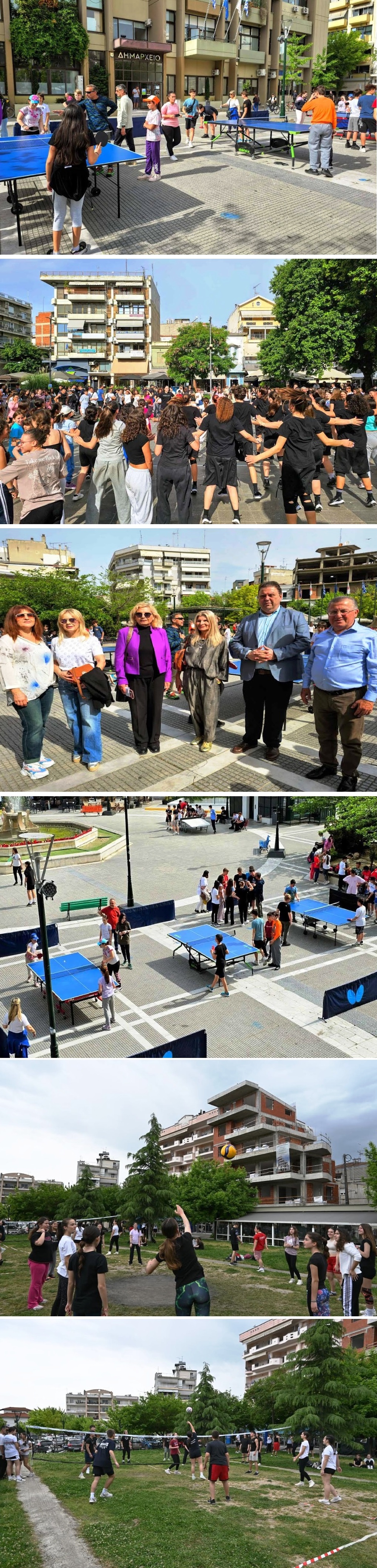 Μέσα από τη δημιουργική συνεργασία των Διευθύνσεων Δευτεροβάθμιας & Πρωτοβάθμιας Εκπαίδευσης Πιερίας με τον Δήμο Κατερίνης και την Αντιδημαρχία Παιδείας, Αθλητισμού & Δημοτικού Ωδείου, τη Σύμβουλο Εκπαίδευσης Φυσικής Αγωγής και το Τμήμα Φυσικής Αγωγής, οι κεντρικές πλατείες της πόλης μεταμορφώθηκαν σε ένα πολύχρωμο αθλητικό φεστιβάλ κίνησης με: