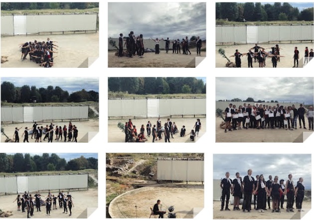 Πριν από την παράσταση του Γλάρου, οι μαθητές του 1ου Γυμνασίου Πειραιά σε ένδειξη τιμής και σεβασμού στον ιερό χώρο των αρχαίων Μακεδόνων απέδωσαν ένα χορικό από την Ιλιάδα του Ομήρου.