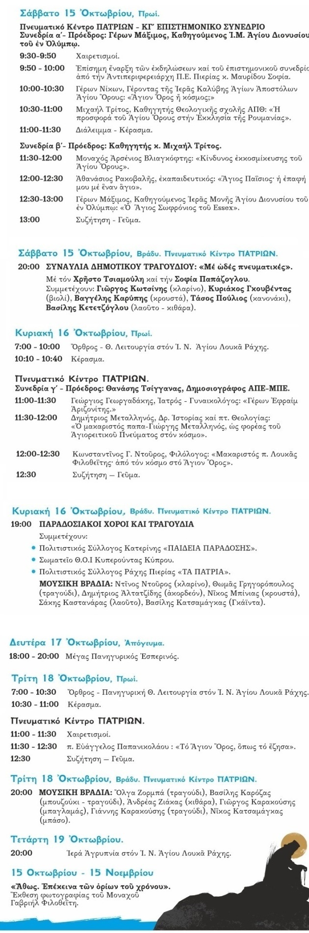 AIGINIONEWS: Πάτρια στη Ράχη Πιερίας – Αφιέρωμα στους Αγιορείτες Πατέρες- 15 έως 19 /10/2022 AIGINIONEWS: Πάτρια στη Ράχη Πιερίας – Αφιέρωμα στους Αγιορείτες Πατέρες- 15 έως 19 /10/2022