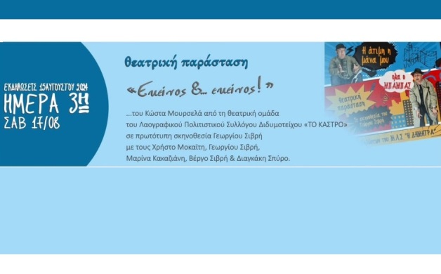 Σήμερα με την θεατρική παράσταση - Εκείνος & εκείνος, ολοκληρώνονται οι εκδηλώσεις 2024 του Μορφωτικού Λαογραφικού Συλλόγου Αιγινίου- Η ΔΗΜΗΤΡΑ - .