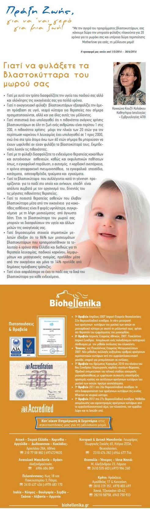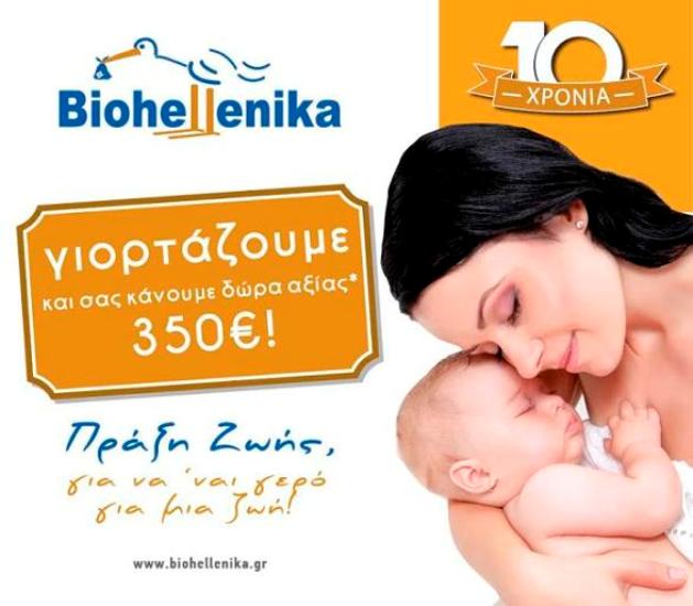 Η Biohellenika, η μεγαλύτερη ελληνική εταιρία οικογενειακής φύλαξης βλαστοκυττάρων, γιορτάζει φέτος τα 10 χρόνια από την ίδρυσή της προσφέροντας προνομιακές τιμές στους μέλλοντες γονείς για τη φύλαξη των βλαστοκυττάρων του μωρού τους.