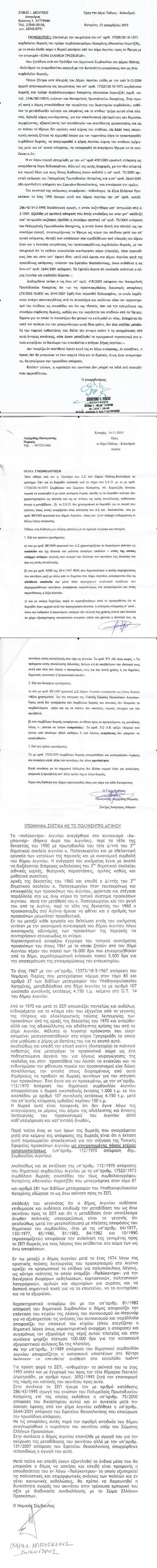 Για να μην αμφισβητείται πλέον η πατρότητα των τριών νομικών εισηγήσεων, τις παραθέτω αυτούσιες και υπογραμμένες όπως επίσης και την απόφαση 418/2005 του μονομελούς Πρωτοδικείου Κατερίνης. Παρακαλώ τον κ. Νταγλιούδη να τη μελετήσει , ιδίως τις σελίδες 4 και 5 όπου γίνεται μνεία επακριβώς όσων ανέφερα.