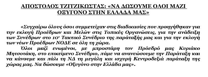 ΑΠΟΣΤΟΛΟΣ ΤΖΙΤΖΙΚΩΣΤΑΣ: ΝΑ ΔΩΣΟΥΜΕ ΟΛΟΙ ΜΑΖΙ ΟΞΥΓΟΝΟ ΣΤΗΝ ΕΛΛΑΔΑ ΜΑΣ
