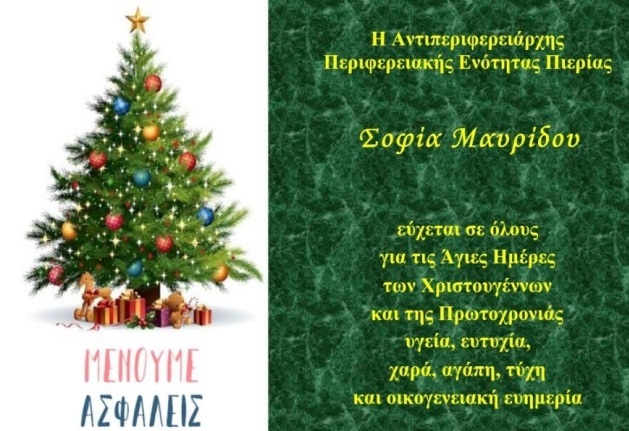 Στον καθένα σας ξεχωριστά και στις οικογένειές σας, απευθύνω από καρδιάς, τις πιο θερμές μου ευχές, για Ευλογημένα Χριστούγεννα, που θα αποτελέσουν την αρχή του τέλους της μεγάλης δοκιμασίας που περνάει η χώρα μας και η ανθρωπότητα.