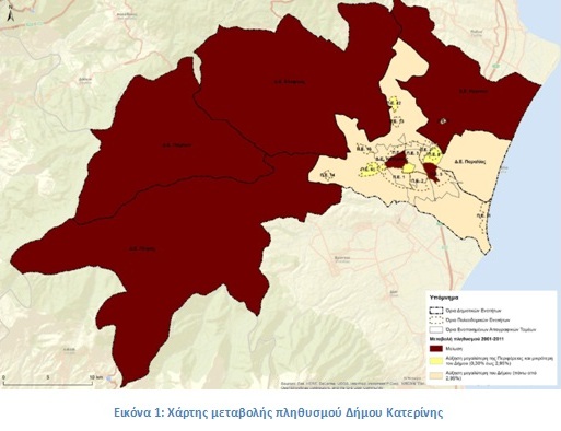 Εικόνα 1: Χάρτης μεταβολής πληθυσμού Δήμου Κατερίνης