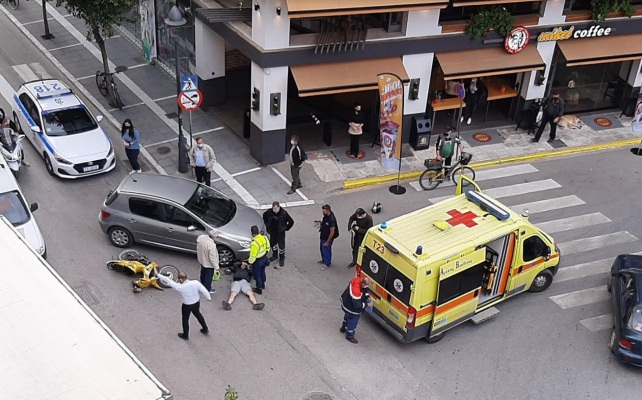 Συγκρούστηκαν Ι.Χ. επιβατικό αυτοκίνητο με το προαναφερόμενο μηχανάκι.