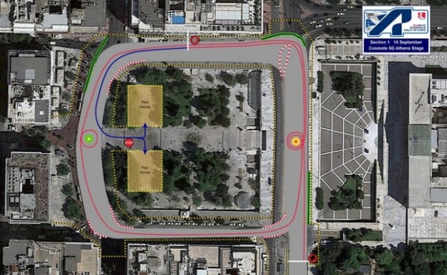 Ειδικότερα για την Πέμπτη 9 Σεπτεμβρίου, οι δρόμοι γύρω από την Πλατεία Συντάγματος θα συνθέσουν τη μήκους 0,98 χλμ. πρώτη ειδική διαδρομή του αγώνα, COSMOTE 5G Athens Stage, από όπου στις 18:08 θα ακουστεί και ο πρώτος αγωνιστικός ήχος του ΕΚΟ Ράλλυ Ακρόπολις!