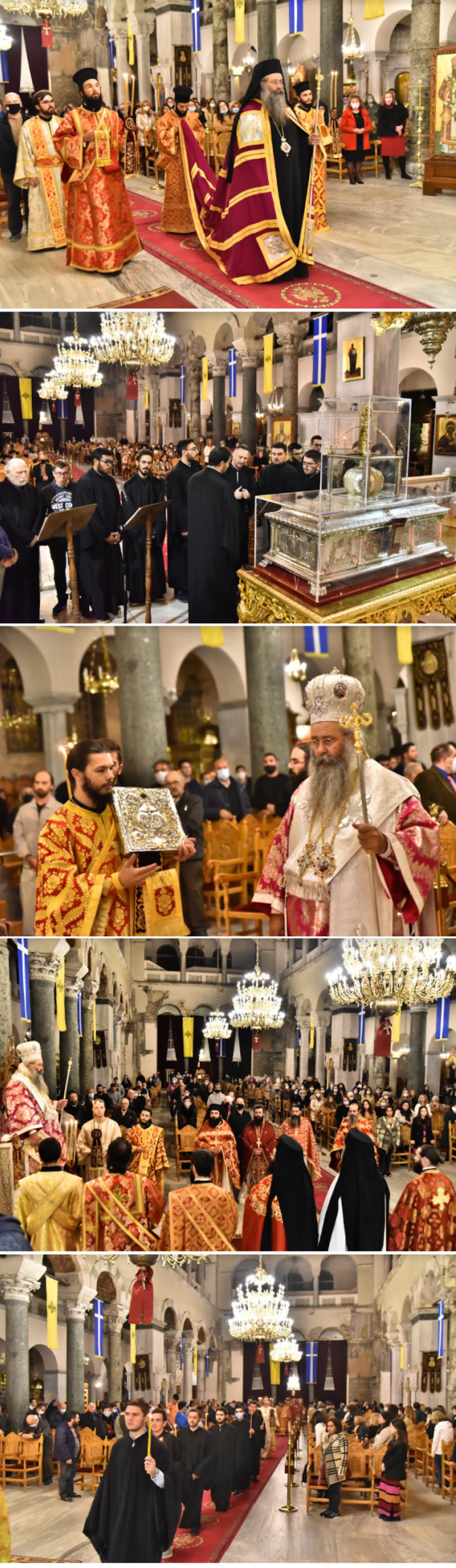 Τη λειτουργική τάξη επιμελήθηκε ο Προϊστάμενος του Ιερού Ναού του Πολιούχου, Αρχιμ. Δαμασκηνός Πέτικας, συμπαραστατούμενος από τους εφημερίους Πρωτοπρ. Γεώργιο Θεοδωρή και Πρωτοπρ. Νικόλαο Χαμαμτζόγλου.