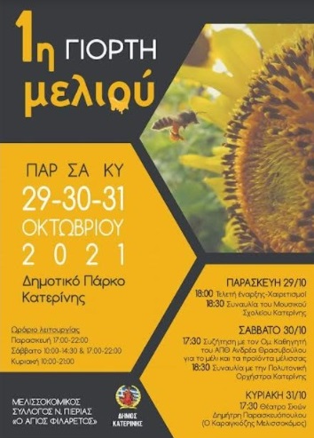 1η Γιορτή Μελιού από τον μελισσοκομικό σύλλογο Ν. Πιερίας «Ο Άγιος Φιλάρετος» και τον Δήμο Κατερίνης