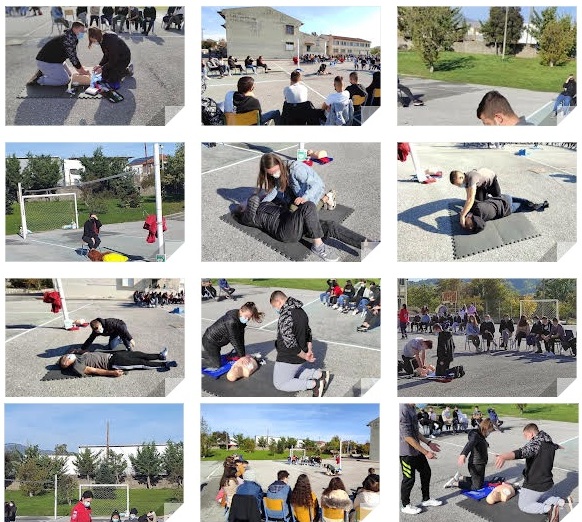 Οι μαθητές και οι μαθήτριες ενημερώθηκαν από τις εκπαιδεύτριες Γεραρίδου Αθηνά και Μπέζα Χριστίνα σε θεωρητικό επίπεδο για τις Α΄ Βοήθειες και παράλληλα εξασκήθηκαν πάνω σε βασικές πρακτικές υποστήριξης της ζωής.
