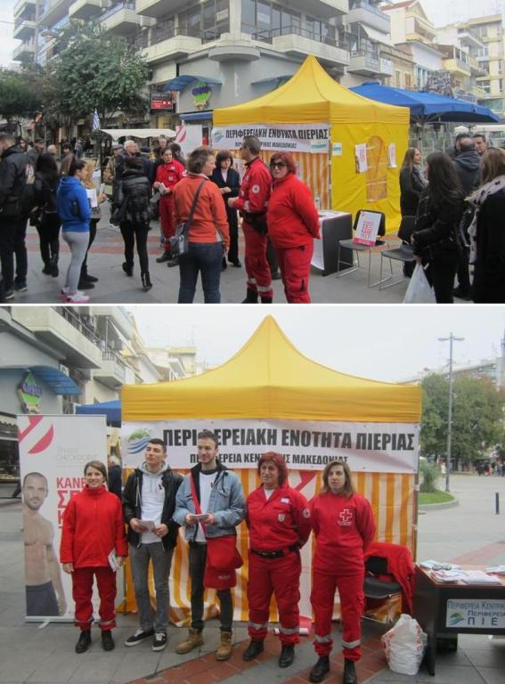 Την Τρίτη, 1 Δεκεμβρίου 2015, η Περιφερειακή Ενότητα Πιερίας και ο Σύλλογος Οροθετικών Ελλάδος διοργάνωσαν με τον Ιατρικό Σύλλογο Πιερίας και το Σώμα Εθελοντών Σαμαρειτών, Διασωστών και Ναυαγοσωστών του Περιφερειακού Τμήματος Κατερίνης στον πεζόδρομο της Κατερίνης, ενημερωτική εκδήλωση με αφορμή την παγκόσμια ημέρα κατά του AIDS.