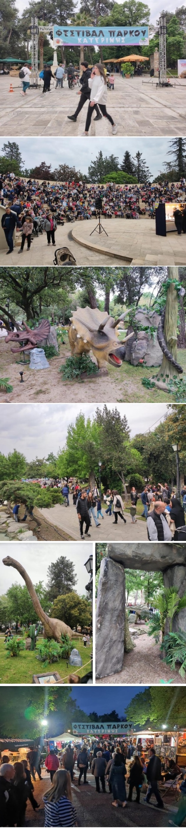 Το ενδιαφέρον όλων, συγκέντρωσαν και οι δεινόσαυροι, όπου διάσπαρτοι στο Πάρκο έγιναν πόλος έλξης και θαυμασμού για όλες τις ηλικίες. Ειδικά για τα παιδιά, την πρώτη μέρα είχαν την ευκαιρία να παρακολουθήσουν θέατρο Σκιών. Ο 14χρονος Μηνάς Τάτσιος, παρουσίασε «Τα 82 εντάλματα του Καραγκιόζη», σκόρπισε γέλιο και καταχειροκροτήθηκε από το κοινό που κατέκλυσε το ανοιχτό θέατρο του Πάρκου. Ο μικρός καλλιτέχνης, τιμήθηκε από τον Δήμο Κατερίνης για την συμβολή του στη διατήρηση της συγκεκριμένης μορφής λαϊκής τέχνης. Την τιμητική πλακέτα, εκ μέρους του δημάρχου Κώστα Κουκοδήμου, παρέδωσε ο αντιδήμαρχος Σταύρος Χριστοφορίδης.