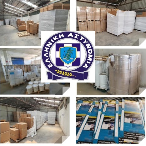 πλήθος πρώτων υλών για την παρασκευή λαθραίων τσιγάρων (κόλλες, φιλτράκια, φύλλα χαρτιού, χαρτί περιτυλίγματος, ζελατίνες συσκευασίας, ένσημες ταινίες).
