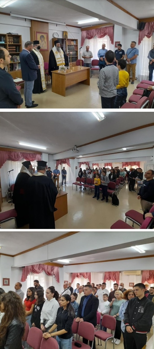Μετά τον Αγιασμό μίλησε στους σπουδαστές και καθηγητές για την αναγκαιότητα μάθησης και μελέτης της Ψαλτικής Τέχνης, καθώς και τις προσπάθειες που γίνονται για να επανδρωθούν τα αναλόγια των ναών όλης της μητροπολιτικής περιφέρειας με νέους ανθρώπους που θέλουν να γνωρίσουν το μεγαλείο της Βυζαντινής Μουσικής συνδυάζοντας και την Ψαλτική Διακονία για τις λατρευτικές ανάγκες της Εκκλησίας.