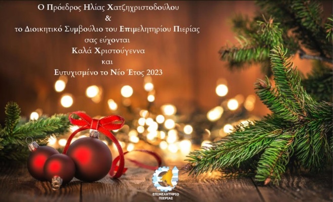 Γιορτινές Ευχές του Προέδρου Ηλία Χατζηχριστοδούλου και του Διοικητικού Συμβουλίου του Επιμελητηρίου Πιερίας.