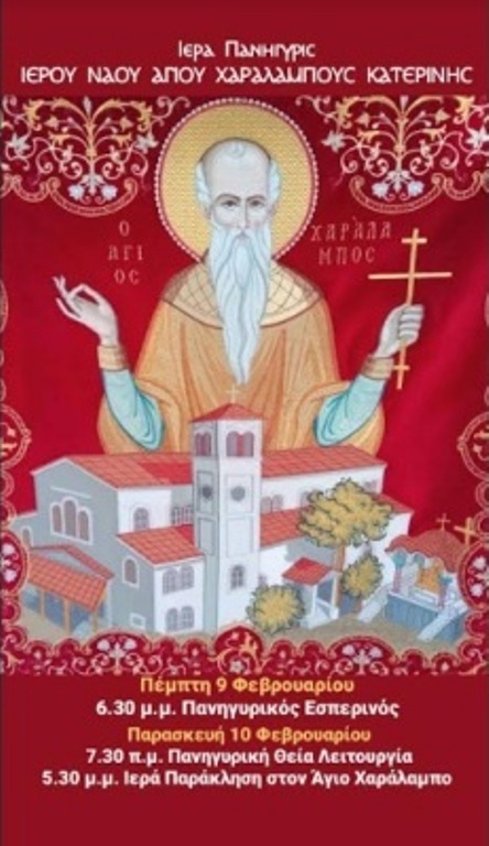 Ιερά Πανήγυρις Ιερού Ναού Αγίου Χαραλάμπους Κατερίνης- 9 & 10 Φεβρουαρίου  2023