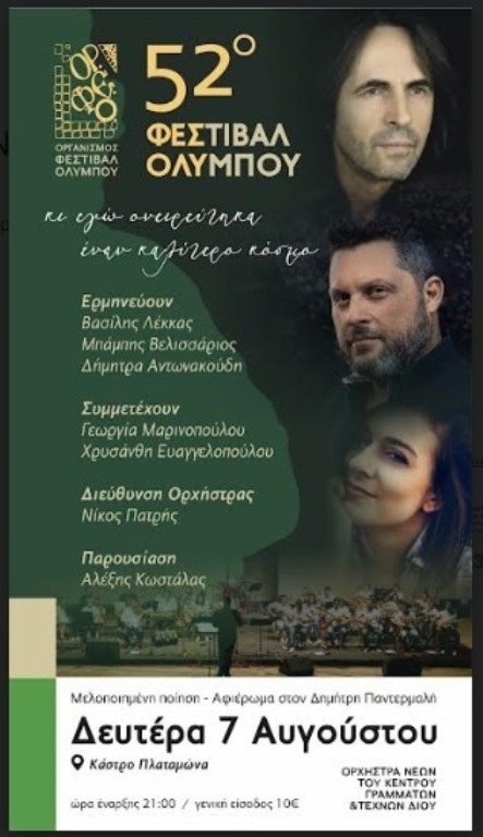 Την Δευτέρα 7 Αυγούστου 2023 από το 52΄ Φεστιβάλ Ολύμπου,συναυλία στο Κάστρο του Πλαταμώνα.