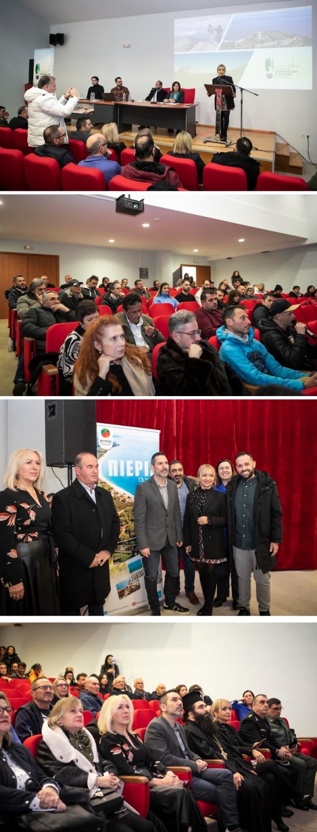 Η εκδήλωση πραγματοποιήθηκε στην κατάμεστη αίθουσα τουΚέντρου Πληροφόρησης Μονάδας Διαχείρισης Εθνικού ΠάρκουΟλύμπου παρουσία της Αντιπεριφερειάρχη Πιερίας κας ΣοφίαςΜαυρίδου, εκπροσώπων του Πιερικού Οργανισμού ΤουριστικήςΑνάπτυξης και Προβολής (ΠΟΤΑΠ), της Ιεράς Μητροπόλεως Κίτρους,Κατερίνης και Πλαταμώνος, εκπροσώπων Βουλευτών Πιερίας, Φορέωνκαι Συλλόγων και μεγάλου μέρους των επιχειρήσεων της Πιερίας, καθώςκαι κατοίκων της ευρύτερης περιοχής.