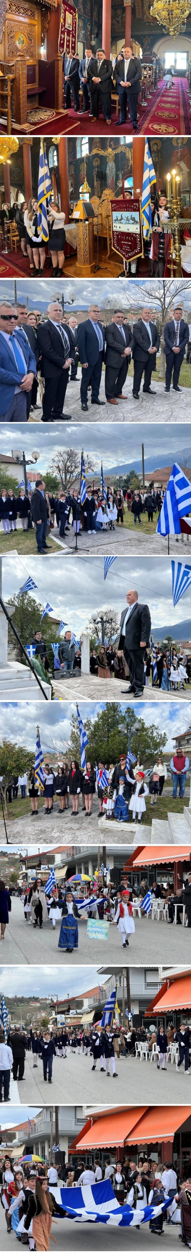 Πιο αναλυτικά, οι εορταστικές εκδηλώσεις ξεκίνησαν με την καθιερωμένη Δοξολογία στους ιερούς ναούς, ενώ ακολούθησαν η επιμνημόσυνη δέηση και κατάθεση στεφάνων στα μνημεία των Ηρώων, που θυσιάστηκαν στον αγώνα της Επανάστασης του 1821.
