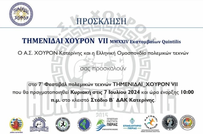 θα διεξαχθεί την Κυριακή 7 Ιουλίου 2024 και ώρα 10:00 π.μ. στο Β΄ ΔΑΚ “Θεόδωρος Διαμαντόπουλος”στην Κατερίνη.