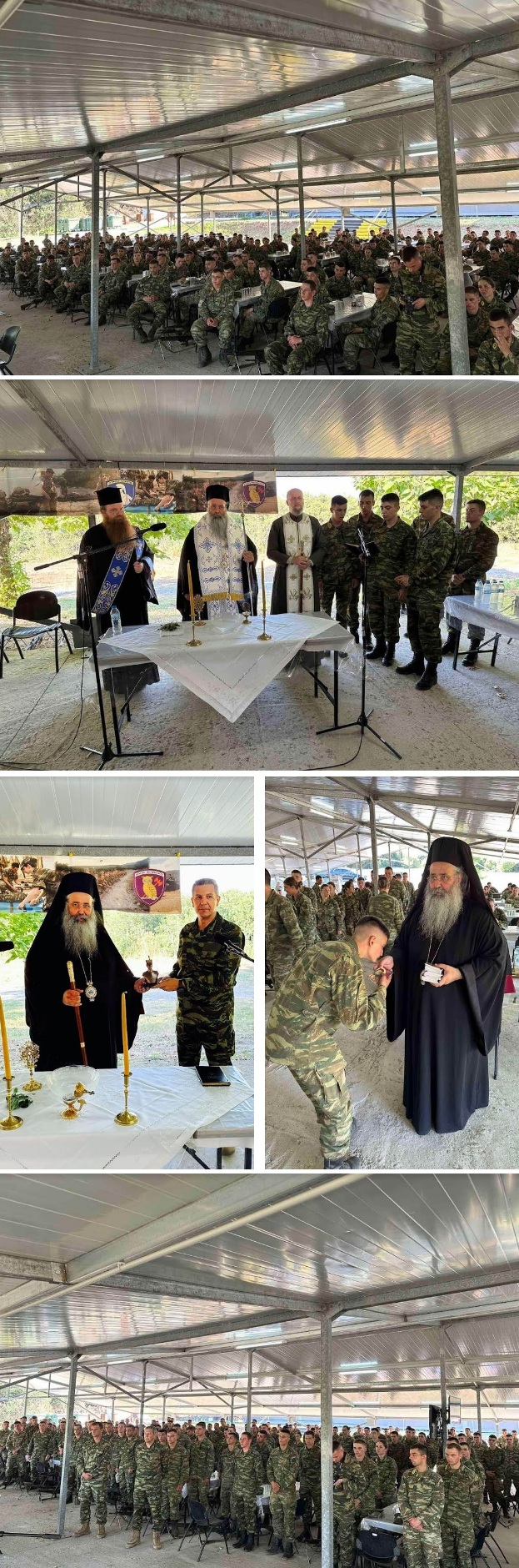 Τον Σεβασμιώτατο υποδέχθηκαν ο Διοικητής του Κέντρου Εκπαίδευσης και ο στρατιωτικός ιερέας π. Σεραφείμ Καλτσουκαλάς.