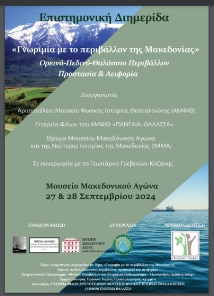 Η διημερίδα συνδιοργανώνεται από το Αριστοτέλειο Μουσείο Φυσικής Ιστορίας Θεσσαλονίκης - ΑΜΦΙΘ, την Εταιρεία Φίλων του ΑΜΦΙΘ «ΠΑΝΓΑΙΑ-ΘΑΛΑΣΣΑ» και το Ίδρυμα Μουσείου Μακεδονικού Αγώνα και της Νεότερης Ιστορίας της Μακεδονίας (ΙΜΜΑ), σε συνεργασία με το Γεωπάρκο Γρεβενών-Κοζάνης.